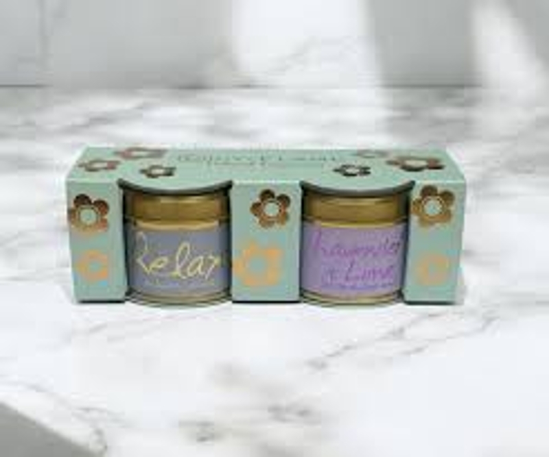 Mini Tin Duo Gift Set Relax & Lavender and Lime. Lily Flame Candles.